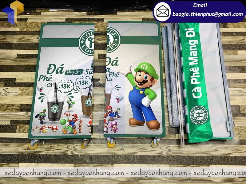 xe coffee take away lắp ráp được dùng để tiếp thị quảng cáo nhiều mặt hàng khác nhau như: Đồ chơi, bánh kẹo, sữa, đồ ăn… Ngoài raxe coffee take away lắp ráp còn được sử dụng ở các khu hội chợ, các khu mua sắm vào những dịp cuối tuần dùng để trưng bày sản phẩm để gây sự chú ý của khách hàng.